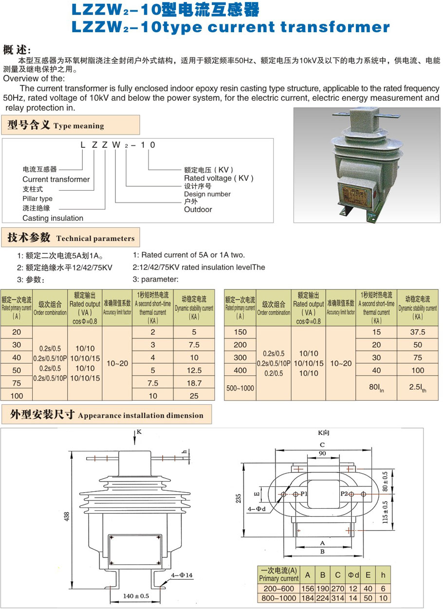 LZZW1-10型電流互感器